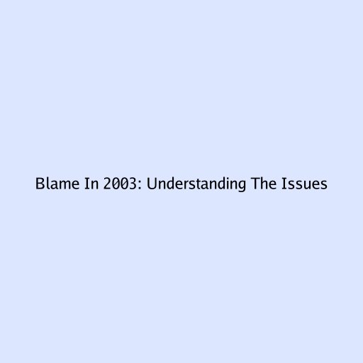 Blame In 2003: Understanding The Issues
