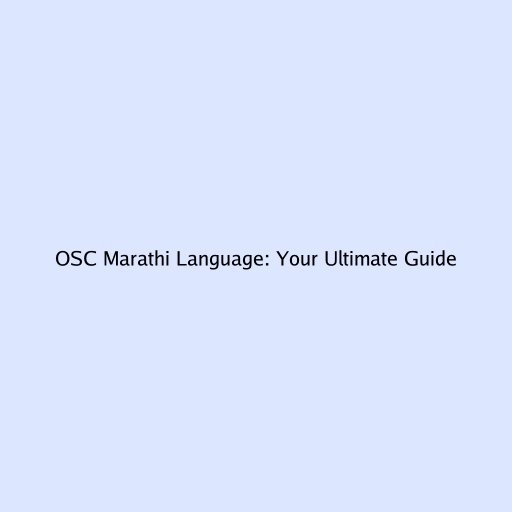 OSC Marathi Language: Your Ultimate Guide